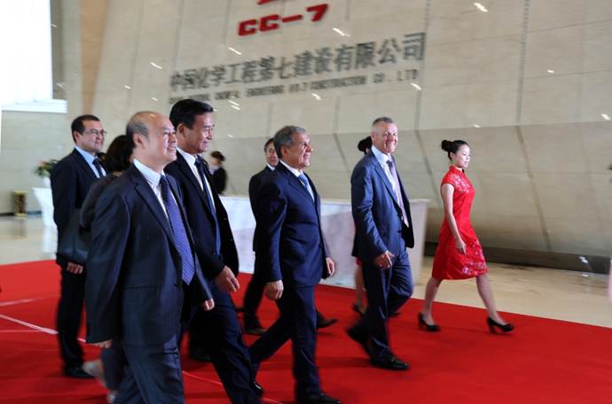 总统Minnikhanov先生表示,我们的中国伙伴中国化学和所属七公司参与建设的AMMONI TAF项目已经实现了投产,各项性能测试都达到了规范要求,取得了良好的成果,得到了非常成功的实施,是我们大型投资项目的样板工程。通过TAF项目的成功实施,你们管理高效、技术精湛,已经证明了你们是可靠的合作伙伴,我们将把CNCEC、CC-7当作战略合作伙伴。现在,石油、煤气、能源等都是俄罗斯鞑靼斯坦共和国最紧要的合作项目,我们希望与CNCEC、CC-7能在能源等方面有一些实质性的合作进展。