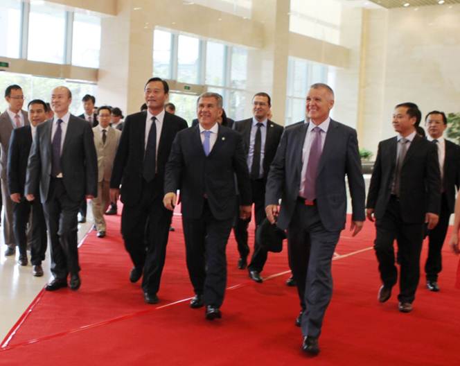 10月10日上午,俄罗斯鞑靼斯坦共和国总统Minnikhanov先生、Ammoni公司董事长Khanbikov先生等一行莅临公司考察访问。集团公司党委书记、股份公司总经理余津勃,公司党委书记、董事长苏富强,公司总经理王大林,副总经理饶鸿、龙海洋等出席了活动。